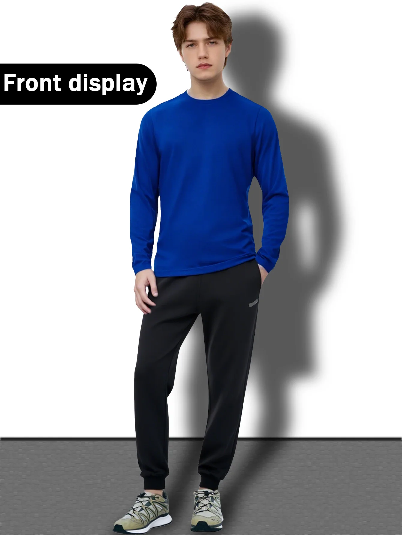 5 Pack Men's Athletic Shirt - Crew Neck Slim Fit Long Sleeve Pullover Base Layer, Rib Knit Quick Dry Lightweight Top